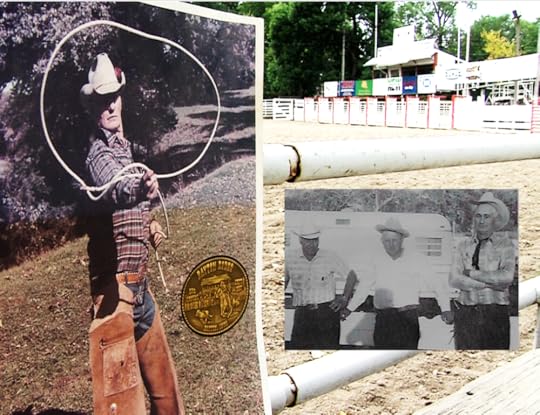 The Dayton [Iowa] Rodeo is one of the oldest rodeos in the U.S. and was established in 1937 by three Dayton residents (shown below in inset). One of them, Allen Porter (shown below. left), was a real-life cowboy of legendary lore. He worked on ranches out west for much of his youth. He was very tall and handsome, sort of the cowboy version of Rhett Butler. And he was a trick roper and veteran rodeo rider.