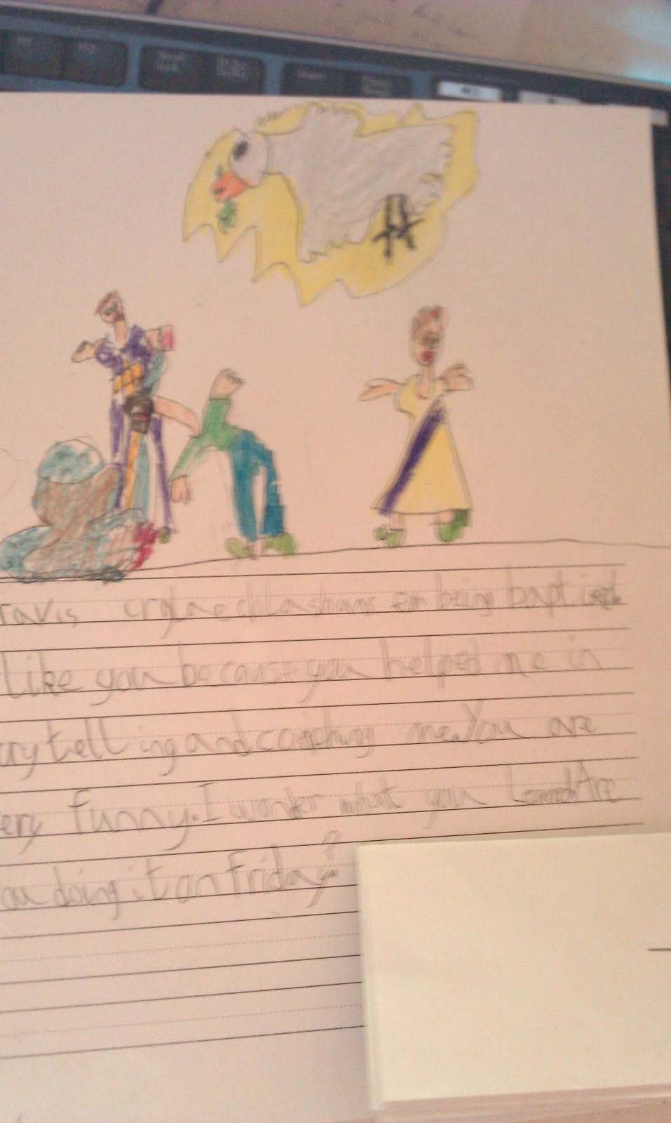 No goatee but I'm proud she said I'm good at "writeing stories."