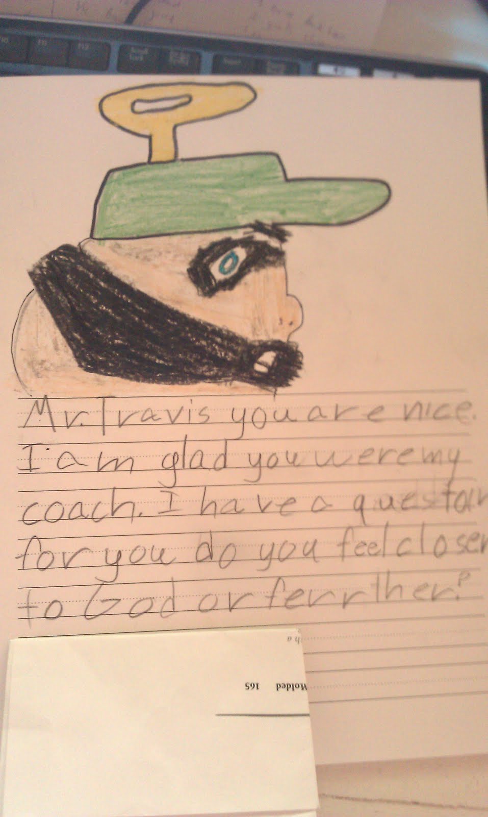 This one is my son's page. He always goes camping over Easter weekend and since I'm a Chatecumenate and my wife is a sponsor the boys would have had to to sit with someone else for the 2 and a half hour mass so we decided to let them go camping as usual. Not the last line. The one he erased. it read "You are a good dad." When i asked him why he erased it, Zalen said he already had written enough.