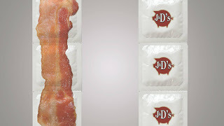 Bacon is Delicious. It is hard (no pun intended) to resist. No, I am not saying these condoma are going to turn a straight man into a cocksucker. Or even a hungry woman into one. You either are or you aren't. Makes no matter to me and if you are thank you for making the world a better, happier place. What I am saying is it takes teeth to eat bacon. The last thing you want in that glorious tender moment of bliss is teeth crunching down.