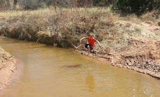 Zalen is 10 now. Here he is taking a flying leap into about a foot of water at Palo Duro Canyon.