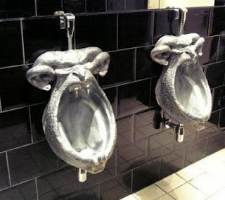 Urinals are manly domain. I suppose a daring woman could perfect a leaning hover move and use one in certain circumstances but their back would get wet at the very least. Now we men are quite proud of our ability to stand and piss at the same time, but our multitasking ability seems to end there. Apparently, we are unable to use our brains as well. Perhaps we simply are incapable of thinking while holding our junk.