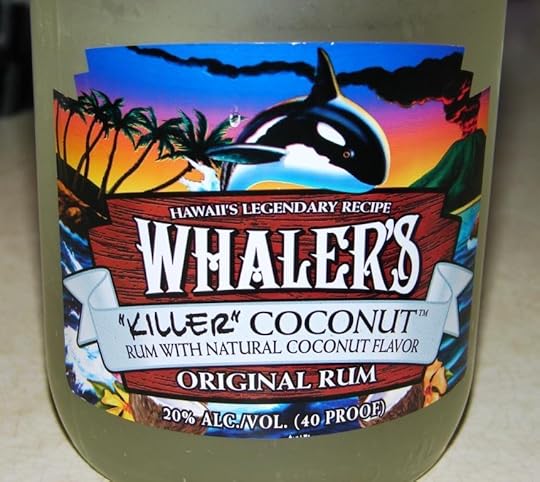 Pour in coconut rum until there is a thin layer of liquid covering bottom of dish.