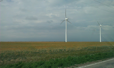 I wish this picture accurately showed the size of these wind turbines, but it is hard to capture. (At the base of the nearest turbine is a bobtail trailer you might be able to see by clicking on the photograph.)