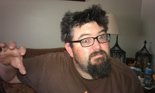 I'd just finished mowing the lawn and my hair was sweaty so when I ran my fingers through it this was the result. My 9 year old told me I looked like Wolverine so I struck a pose.
