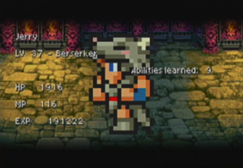 They tiptoed past a sleeping Carbuncle, stepped around a few trap floors, and found themselves in a huge room with an empty chest. Jerry was incensed, knowing that every treasure box item on the planet was rightfully theirs. So who took this one? Why, it was none other than our old friend Gilgamesh. With the mighty weapon he callously stole, he challenged Jerry & friends to another fight. And this time, he was stronger than ever.