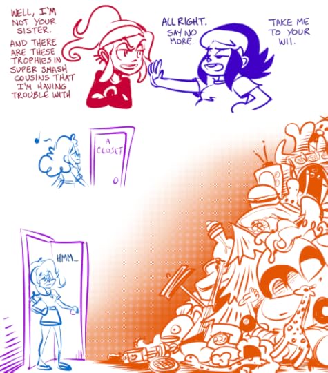 He asked for Izzy in an action shot or chilling with games, so I made it a videogame action shot.