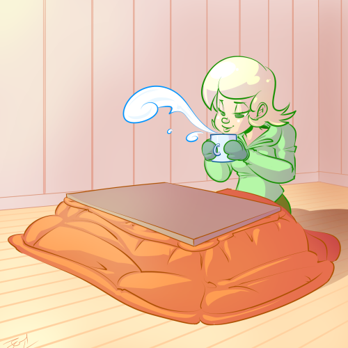 Commission #6 for Hayden, of his OC relaxing in the winter.