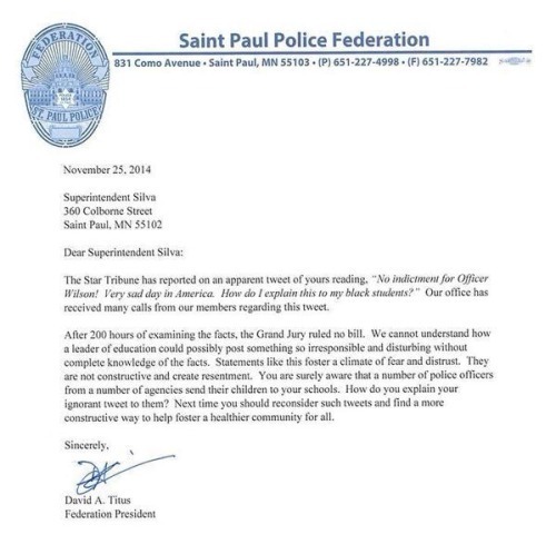 Please send your support to this Superintendent. We care more about dead black people, than how police officers feel. Why should she apologize? School district contact info: