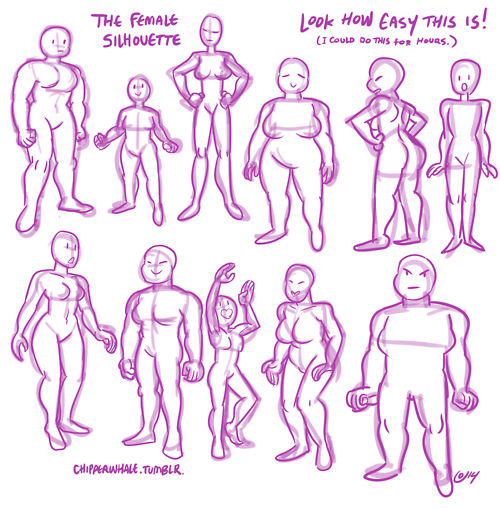 Variation in body silhouette is a fun and expressive way to challenge yourself as an artist. I can make everyone of these women sexually attractive, but the REAL challenge is making them unique characters whos sole trait isn’t her sex. Honestly it’s laziness on their designer’s part. *cough*
