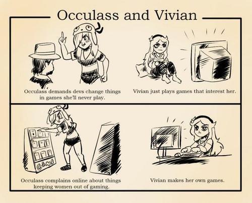 Point #3: “Vivian makes her own games” Uh yeah, because games are something that can be created overnight by a single person typing at their computer. This is even worse than people who say “do you think comics suck, then create your OWN comics!!!” because at least comics CAN be done in a relatively short amount of time with a small amount of personnel. Videogames cannot.