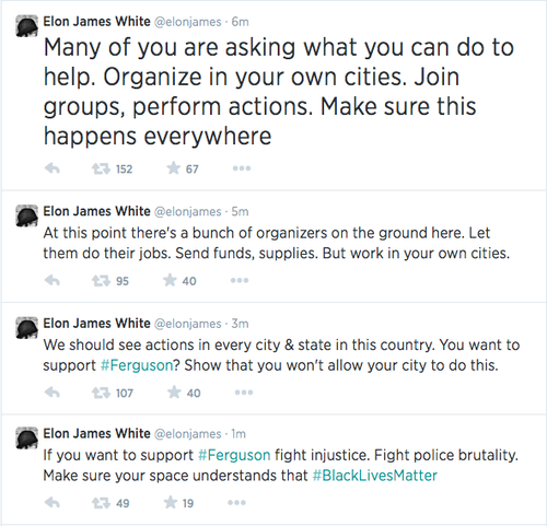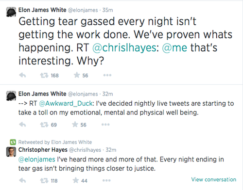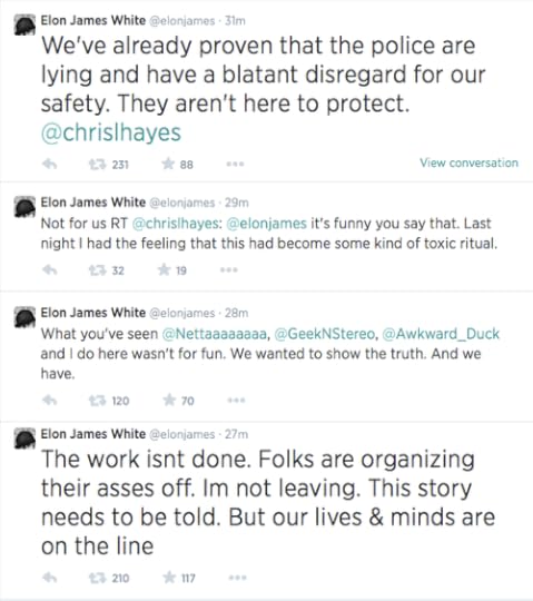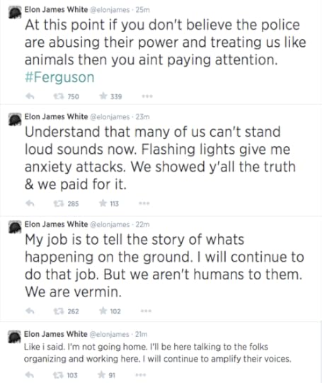 Journalists (All of these are either on the ground in Ferguson as I type this or actively covering events in Ferguson, both Brown’s case and the rallies):