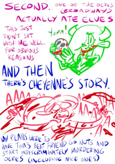 Ogres wouldn’t actually eat elves… but the elves think they do. It’s just a rumor. Moreover, the fear would go both ways. Ogres would be scared of elves too, because they think they have these dark magical powers that would cause their penises to fall off, among other things. This mutual fear has kept the two races from interacting for centuries.