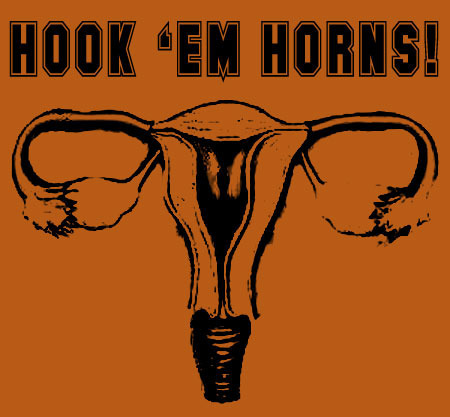 This is very likely only a joke for people who have the grave misfortune to live in Texas, but we were driving around today and Amanda pointed out that the Loghorns logo (featured prominently on the back of about every third pickup or so) strongly resembled the female reproductive system. Sounded like a joke for Tumblr if I ever heard one, and so it was off to Photoshop! You’re welcome.