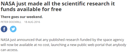 This is really quite a big deal. A tremendous amount of modern research ends up being sold to journals which require unreasonable payments to access it and only pay the original authors a pittance. It’s nice to see an agency like NASA deliberately widebanding its findings.