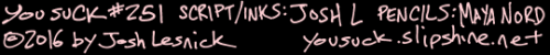 Here is the Tumblr post of #251. It’s the first You Suck comic with 2 artists. We hope you liked it.