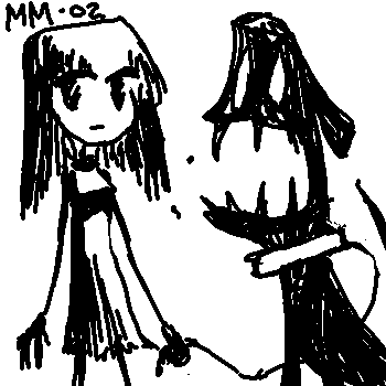 The Darkworld Girl (I still haven't entirely settled on a name for her, but for now, she's "Darkworld Girl") was created on an Oekaki board a looong time ago. I believe this is my first picture of her, drawn back in July '02.