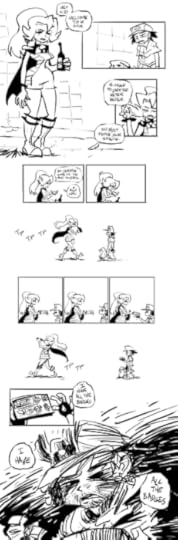 Some of you may know that I was working on a lot of revisions and rewrites and whatnot for the third book. This got really overambitious and is what mostly can be blamed for it never coming out. This has all been scrapped for the collection. To keep this book from being delayed June 2013, I'm planning to make it a pretty straight and simple collection, with print versions of everything as it appeared on the website, with each chapter preceded with notes from the author. The special features will include all the extras that were in the original printings of the first 2 books along with the other extra comics I've done since, all the guest comics I can get clearance to include, whatever neat illustrations and WIPs I can find on my computer, and at least one completely new thing.