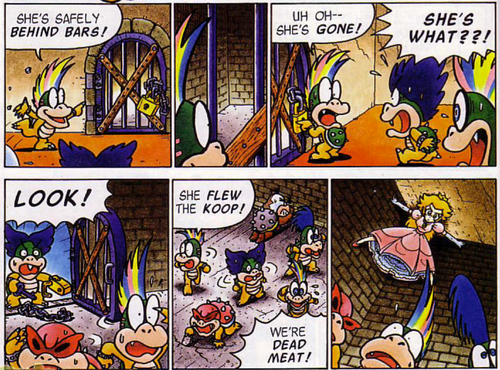 With the exception of the one posted previously, this is my favorite scene in the comic. Peach is a goddamn ninja!