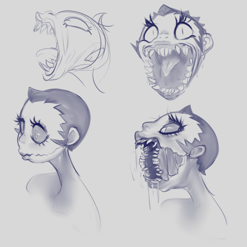 Was kicking around the idea of her being some ascended version of one of Tealbirb’s smooch/orifice demons that got sick ofTeal’s shenanigans and wandered off to become the strong, or something. So then I ended up doodling some variations on orifice demon “faces”