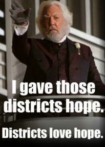 Whatever larger idea your protagonist is battling, that idea will need a manifestation. For instance, in The Hunger Games trilogy, “the system” is represented by Snow. The story is not over until Snow is defeated and his defeat marks the system’s defeat.