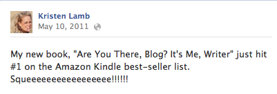 I also hope you pick up copies of my best-selling books We Are Not Alone–The Writer’s Guide to Social Media and Are You There, Blog? It’s Me, Writer . And both are recommended by the hottest agents and biggest authors in the biz. My methods teach you how to make building your author platform FUN. Build a platform and still have time left to write great books.