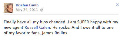 Same with James Rollins. He was my all-time favorite author. I stalked talked to him on Twitter and later, dared to ask the stuff that scared me. I asked for a blurb for my second book, and Jim, being the awesome person he is, not only said yes, he read my first book We Are Not Alone–The Writer’s Guide to Social Media and loved it so much he bought a copy for his agent Russ Galen…who is now my agent, too.