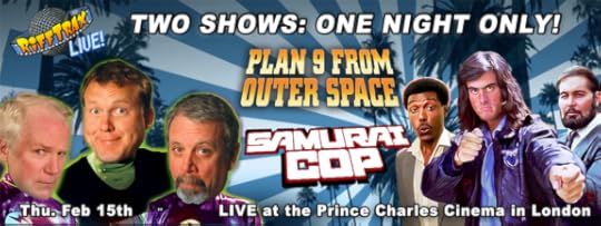 RiffTrax Goes to London! Those of you in the UK are in for a treat! For the first time ever, RiffTrax: Live is broadcasting live from the Prince Charles Cinema in London on February 15. And you don’t get just one movie – you get two: Plan 9 From Outer Space and Samurai Cop. It’s one night only, so don’t miss it.