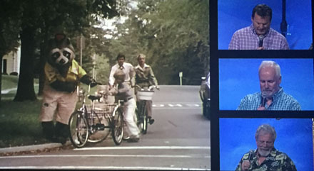 Mike, Kevin, and Bill kicked off the party with a short involving street safety with a raccoon that everyone kept calling a bear. This short was actually funded by the Department of Transportation. Scary!