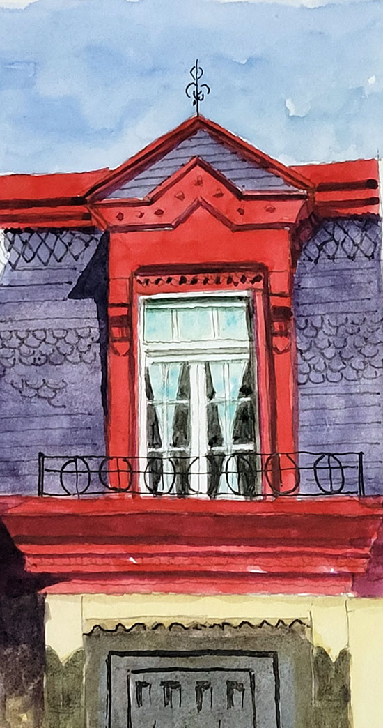But on a more serious note, my operation was wildly successful but I am 73 years old. I used to walk at least 45 minutes, each way, to do my urban sketching. I’m getting to a stage in my life where that just isn’t going to happen every day as it once did. So, I suppose I WILL be doing less urban sketching. Maybe I’ll paint roses and onions more. In any case, I’ll be putting pointy and fuzzy sticks to paper as often as I can.