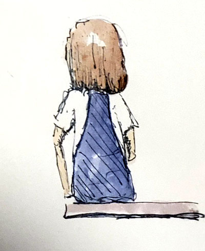I’ll throw this one in as my “teaching moment.” Chantal started bring her sketchbook with her and found the 5-minute routine as frustrating as I do. At one point we were discussing how to grab a scene quickly and so I showed her how I would grab a scene in a minute or two. As I’ve said, I’m not good at this but then ability has never prevented artists from giving advice to someone else (grin).