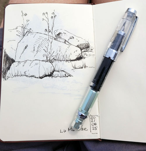 When I came to sketching I was holding a fountain pen. These days I’m still holding a fountain pen for most of my art. Talk about a rut, but it is my rut and I like it. Heck, everyone says that using a pen is the ONLY way to learn to draw. I’ve never quite followed the logic of that claim, within limits, it has worked for me. It’s those limits I want to talk about today.