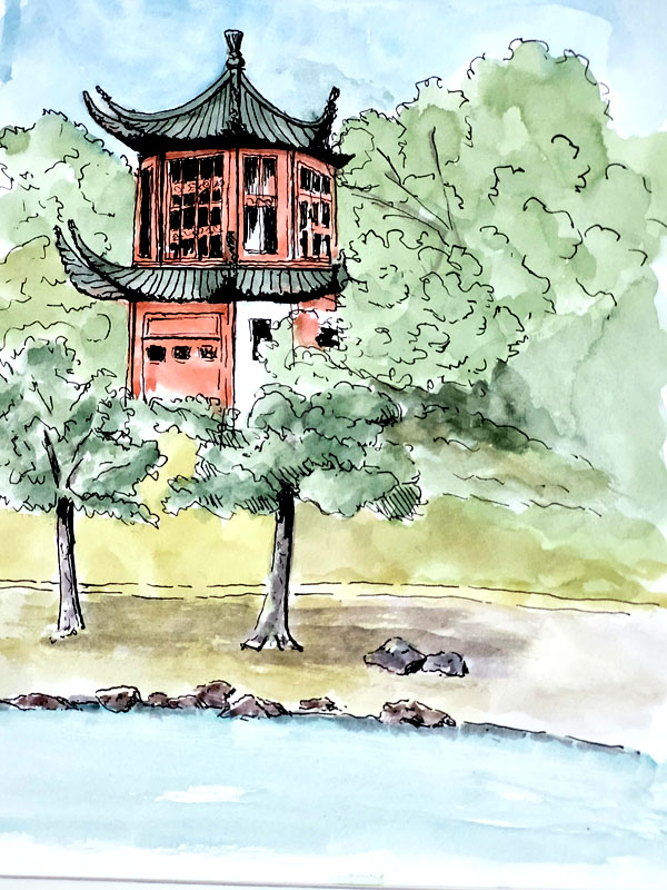 The next morning I headed off to the Montreal Botanical Gardens where I spent half a day sketching stuff, including this place that’s part of the Chinese pavilion there. l had a great time but was quite tired when I headed back to Quebec City.