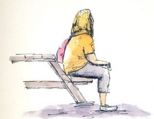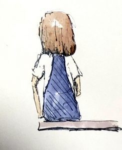 I promised not to bore you with my stream of 4-5 minute sketches but I think sharing a few of them might give me a chance to mention what I actually have been sketching while out on our walks. First are the people. I’ve drawn a bunch of them, mostly as we sit, taking a break in one of the local parks. These are typical of those efforts. Nothing to write home about but I really like the little girl, with her large head and big hair, perched on her frail body.