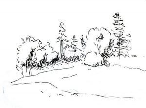 I did this rather quick (10 min) sketch of a basswood tree (3×5) while on a walk. It was fun to scrumble in masses rather than drawing my typical Brillo pad trees. I like the result and plan to draw a bunch more trees, though Quebec trees are dropping their leaves en masse right now.