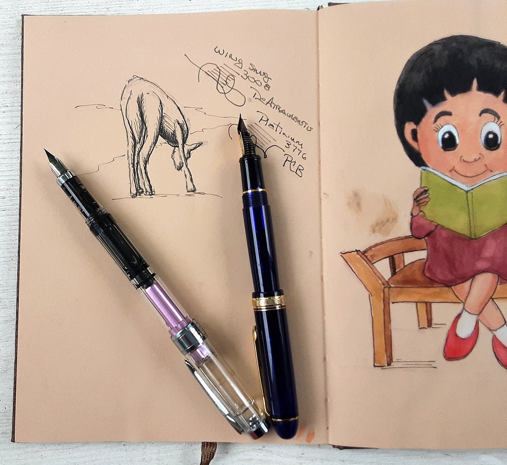 There has been a lot of digital ink spilled about how pigmented (ie waterproof) fountain pen inks require lots of maintenance. I’ve always argued that this was not true, citing the fact that the only time I clean my sketching pens (with these pigmented inks) is when I’m going to store them or if I’m changing colors.