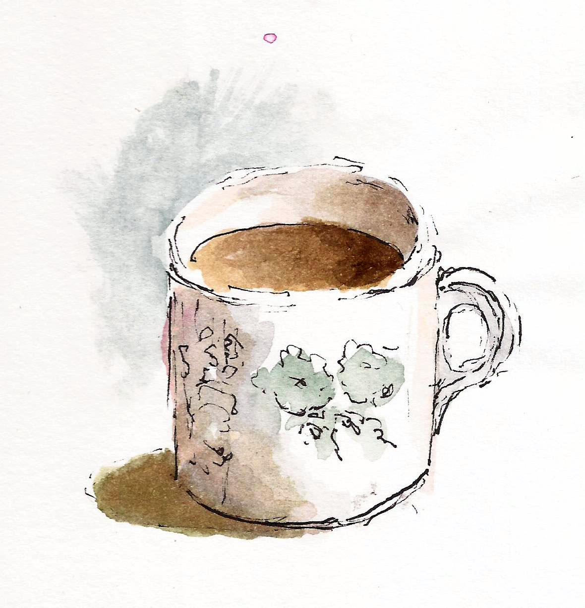 Rather than a coffee cup, I chose a tea cup. Maybe that makes a difference too. In any case, I like this result better than those “loose” cups. It suffers a lack of precision I suppose but it looks more like a finished drawing to me. Opinions welcome. Just keep them loose.