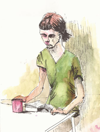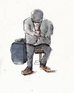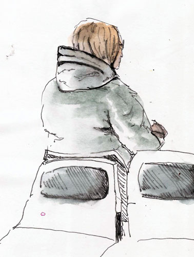 The bus was to depart at 5AM so, a bit bleary-eyed I sat at the bus station at 4:45. What’s a guy to do but draw. I did a couple quick sketches before they started loading the bus. Here they are.