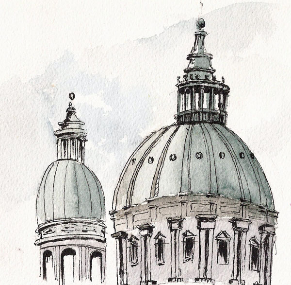 And so I drew two of the domes quickly, trying my best not to distort them too much. It suited the winter weather conditions to sketch quickly.