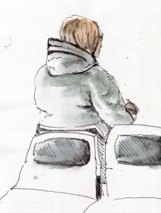 So, it was no small thing for me to head to the bus depot and head down the road, thanks to my rheumatologist. I was going to Montreal to see my daughter but also to meet up with Marc for a couple sketching sessions. There would be lots of chatting involved as well since we hadn’t seen each other for so long.