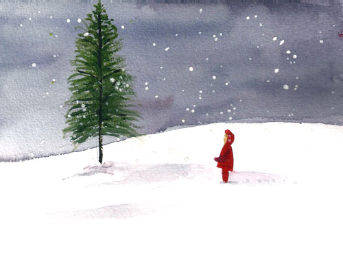 I thought about snow and got out some white gouache. The sole reason for this one was that I wanted to spatter white gouache to make snow because I’d never done it before. The rest was an afterthought.