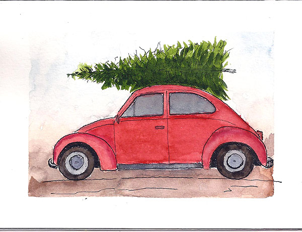 Sitting in a room without a subject wreaks havoc on my lack of imagination and this is reflected in my results. I’ve seen a lot of examples of a red vehicle carrying a Christmas tree and so that was my first stop. I found a volkswagen photo on my phone and went to work. This was the result: