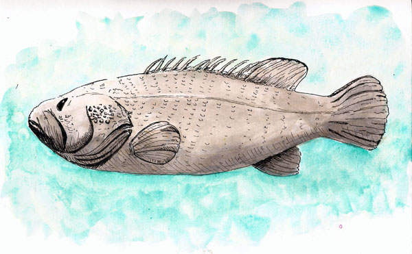 I tell you all this because I’m going to show you my sketch of this giant fish but I can’t vouch for accuracy whatsoever. But I did capture a fish, in the dark, on that December day.