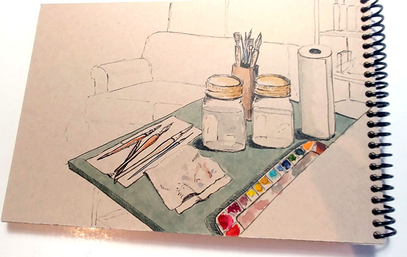 The plan was to wait until 2020 to start using them but I couldn’t wait to try the Strathmore paper so I sketched the small support table that sits to the left of my drawing table. I really like drawing on the paper and, at least for these light washes, the paper does fine. I think I’m going to like it even if it isn’t S&B.