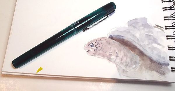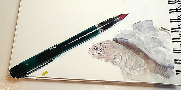 As a street sketcher, one of the things I really like about Platinum pens is that they are the one company that sells a waterproof ink for their pens in cartridge form. This is also wonderful if you’re trying to get someone involved with sketching and/or fountain pens because they don’t have to deal with pen filling. You just throw in a cartridge, about $3 for four of them, and you’re all set. I’ve been using a Platinum Plaisir that way for quite a while. This new Prefounte is lighter, though and I know I’m going to love it. Kinda silly since I’ve got a bunch of high dollar pens sitting around but I don’t have to worry about losing these cheaper solutions.