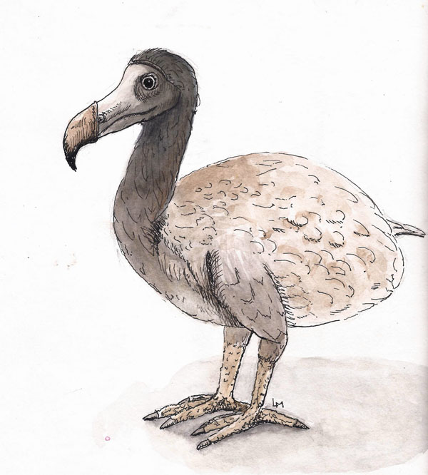 It seemed appropriate for me to do my last sketch there of the Dodo bird, a bird that was made extinct back in the 1600s. Humans brought rats to their home island and then started turning their jungle-like habitats into pasture land by the logging of ebony. As we’ve allowed 30% of our bird population to be eliminated from the Earth in the last 50 years, we should reflect on the Dodo and so I do here.