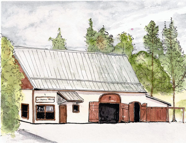 Instead I decided to draw the barn, which used to be a barn but it now seems to be a building where the nearby church holds banquets and parties. It’s where we all gathered to eat lunch and to stay warm. The large door openings are now large viewing windows and several people did their drawing from inside. I should have because it was cold for a guy who grew up in Arizona. I have to confess that I rushed this sketch because of this but here it is. I hope to draw this building again some day, maybe when it’s a bit warmer.