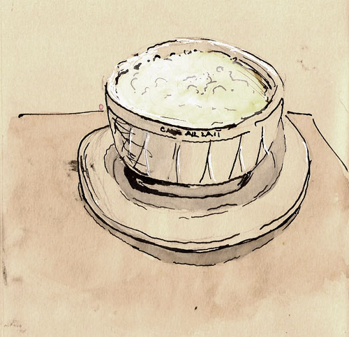 I decided I would draw it when it came. When it did arrive I realized that this was a dessert before coffee drink and I was unsure what to do. Whipped cream doesn’t sit around long when placed on top of hot coffee so I just did a really quick sketch of my bowl of cafe viennois. It tasted better than the sketch looks.