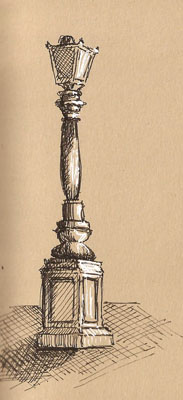 So, I packed up walked to the parking lot and swapped my big sketching bag for a small ‘scribble’ book and a pen and I went wandering, looking for places to stand out of the rain and sketch.