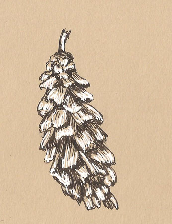 I was making good progress when it started to rain. I persisted. The rain continued, plopping drops of water onto wet ink. I was using Platinum Carbon Black for this sketch (in a Hero fude pen) and PCB dries more slowly than DeAtramentis Document inks, particularly when it’s cold. The combined slow-drying and wet water was creating little bomb-craters on my drawing, to say nothing of the discomfort I was beginning to feel while standing there with no protection.